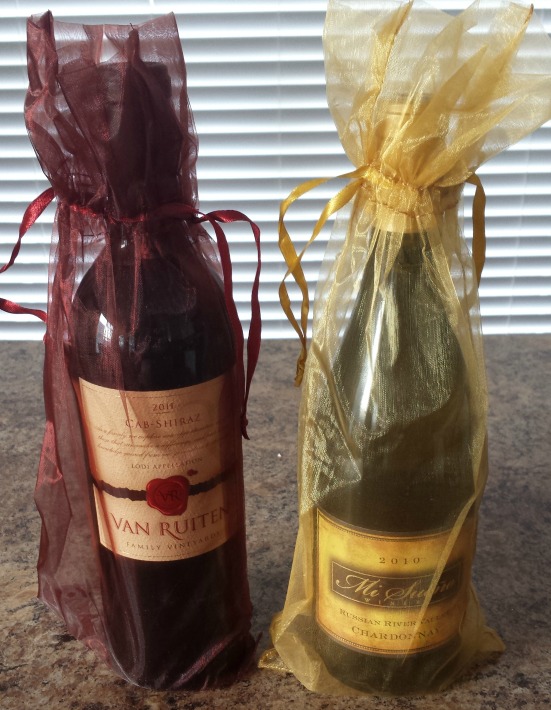 The first thing I noticed was the presentation of the wine. These wines were shipped inside this lovely Wine Country gift box in the typical molded carton to ensure safe delivery. When I opened the box, I was delighted to see that each wine was in a very pretty drawstring sleeve.