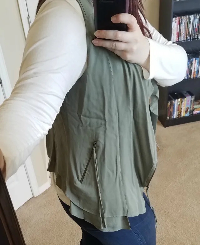 I fell in love with this vest immediately! It is thin and soft and very drapey, as the name suggests. I usually wear vests in the fall, but this lightweight vest is perfect for sprint.